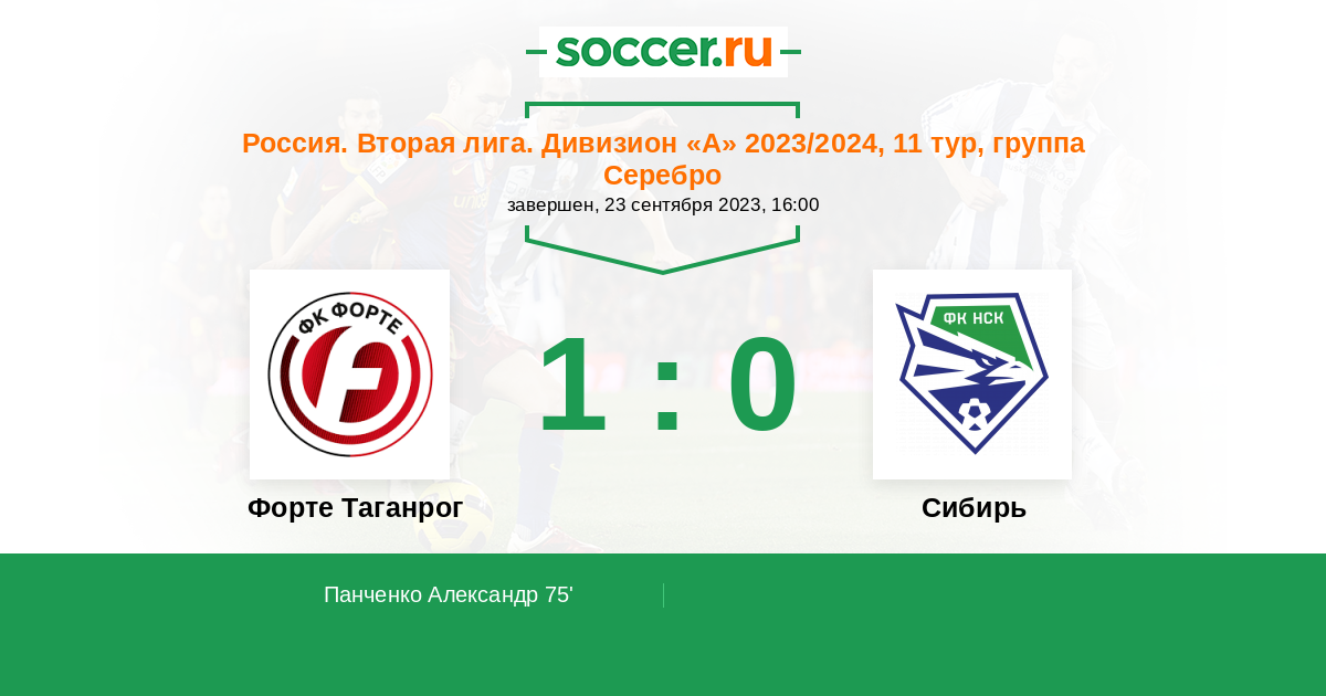 Протокол матча Форте Таганрог против Сибирь