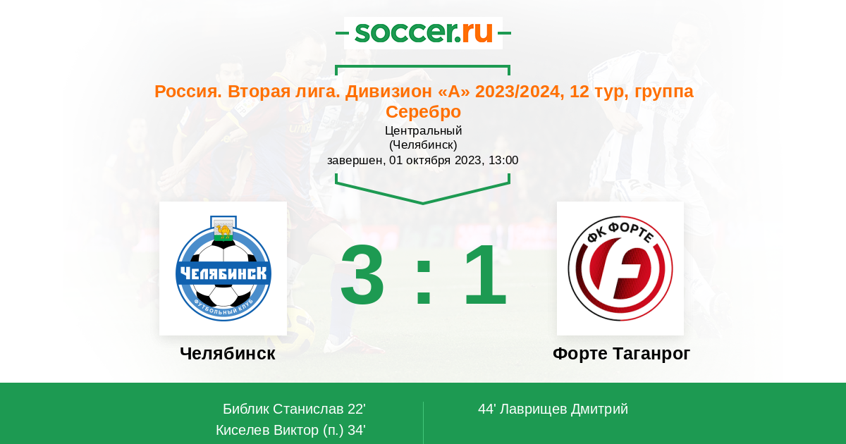 Протокол матча Челябинск против Форте Таганрог