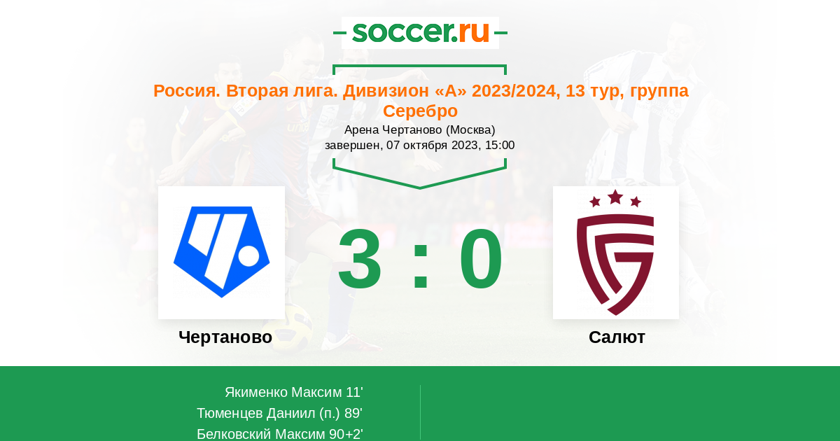 Протокол матча Чертаново против Салют