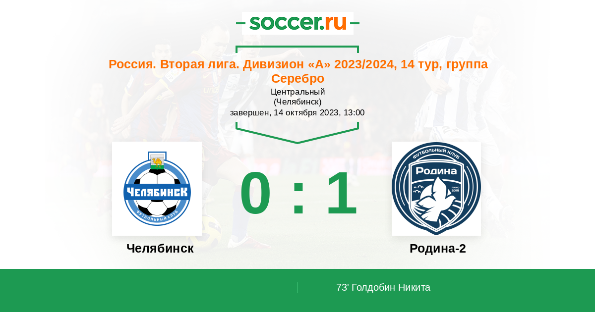 Протокол матча Челябинск против Родина-2