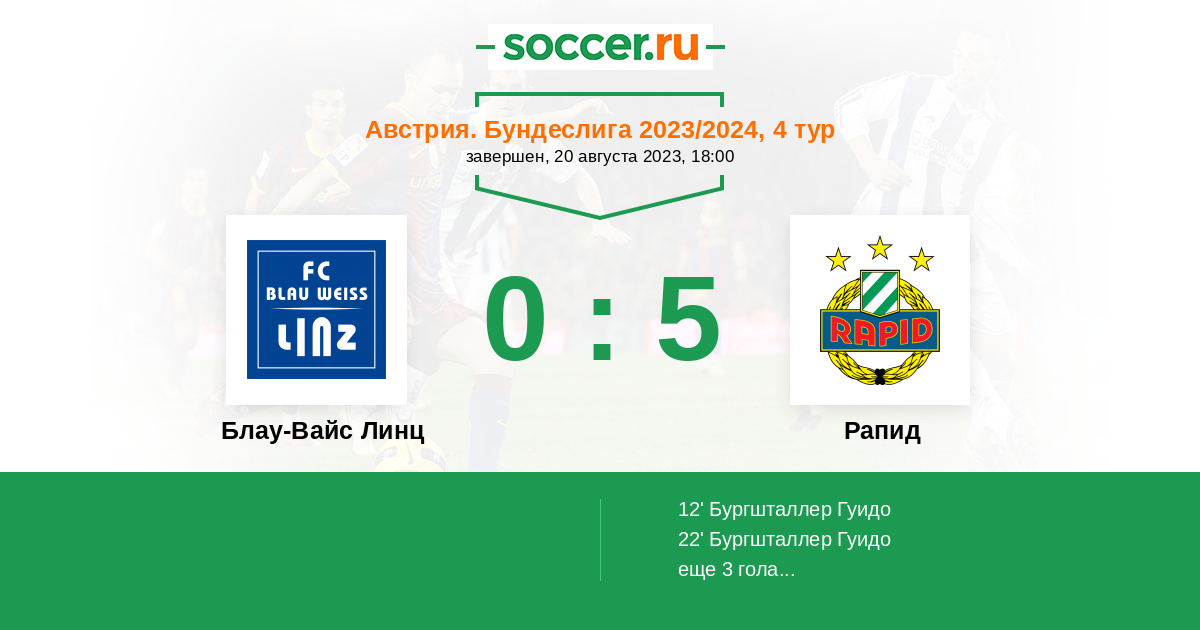 Протокол матча Блау-Вайс Линц против Рапид