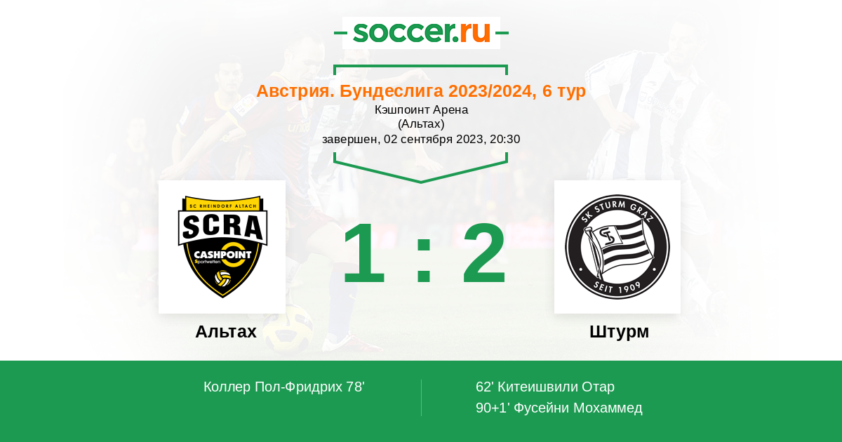 Протокол матча Альтах против Штурм