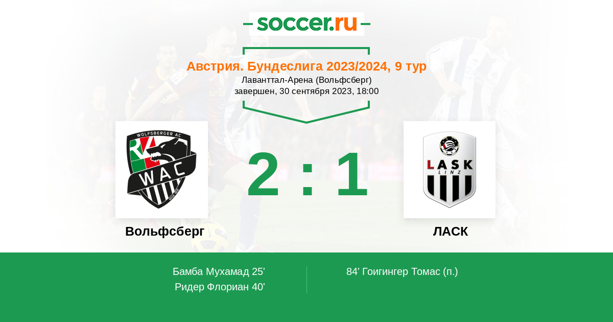 Протокол матча Вольфсберг против ЛАСК
