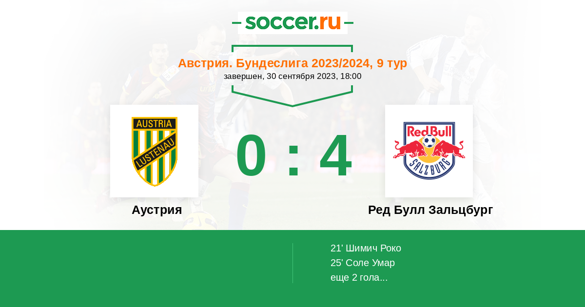 Протокол матча Аустрия против Ред Булл Зальцбург