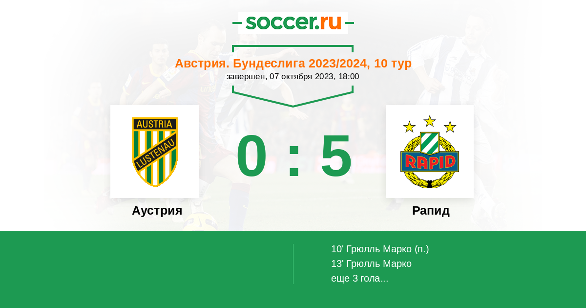 Протокол матча Аустрия против Рапид