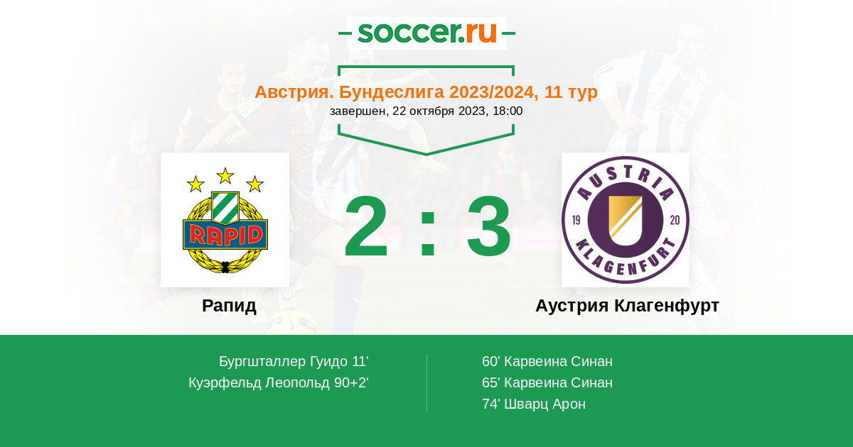 Протокол матча Рапид против Аустрия Клагенфурт