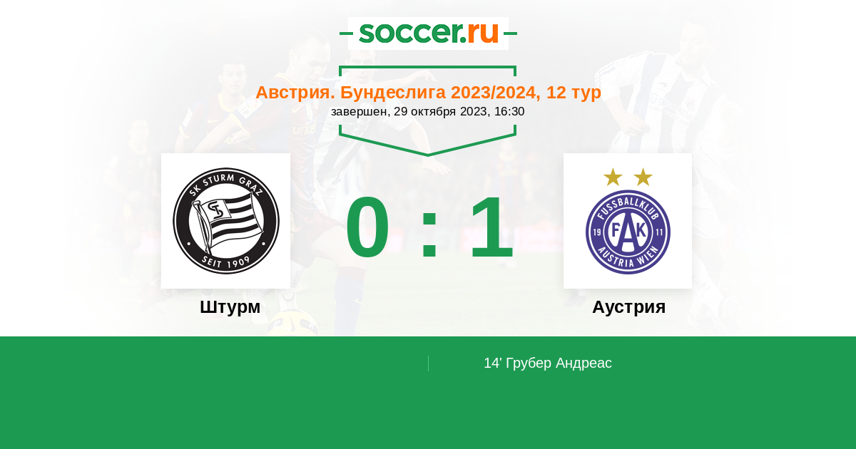 Протокол матча Штурм против Аустрия