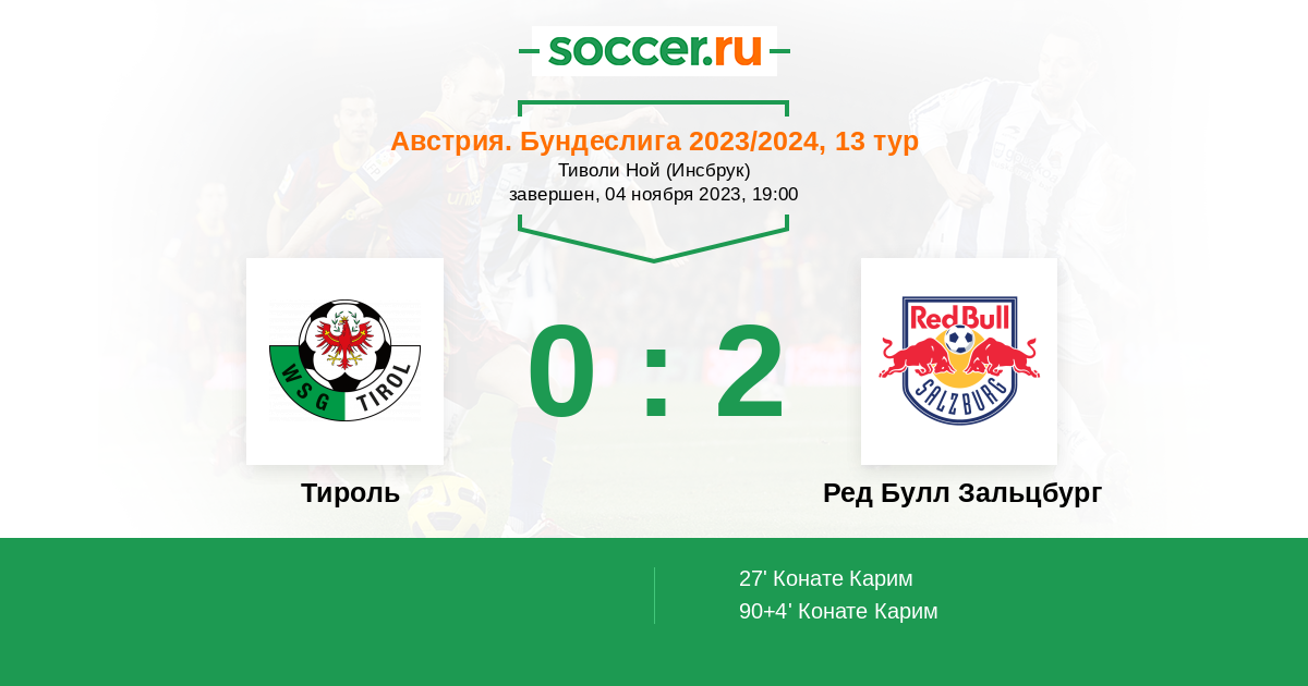 Протокол матча Тироль против Ред Булл Зальцбург