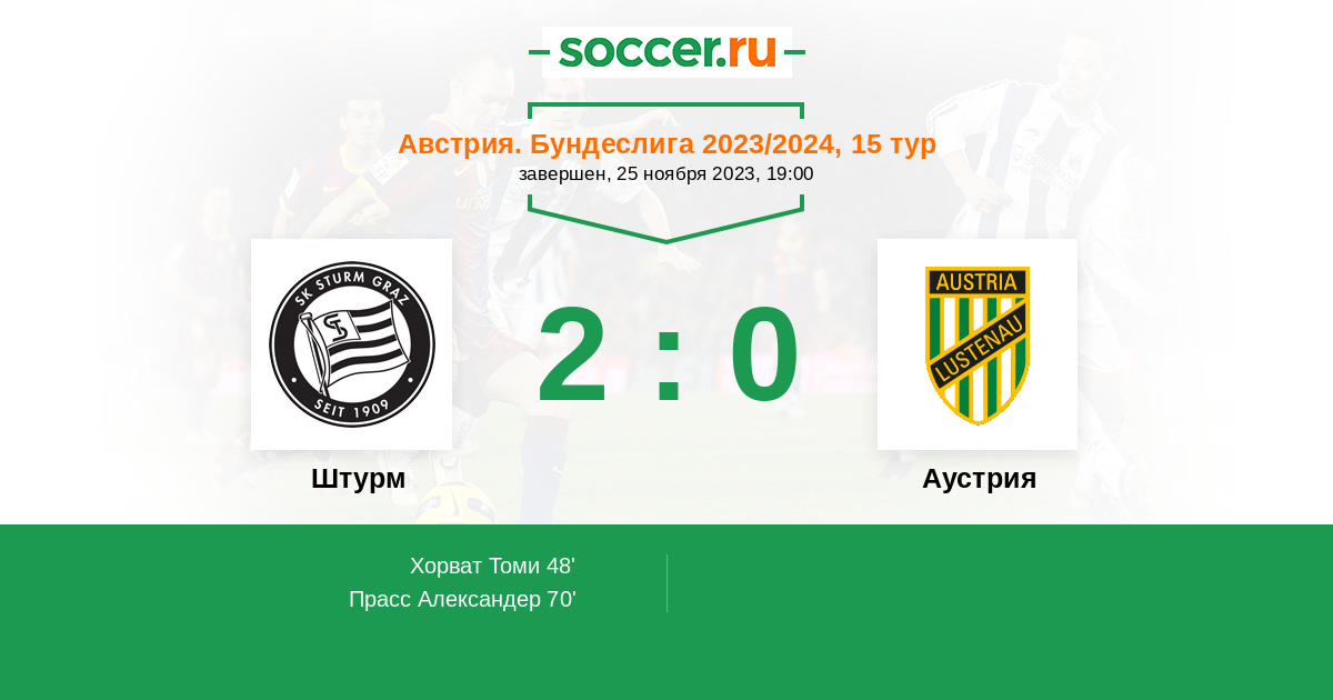 Протокол матча Штурм против Аустрия