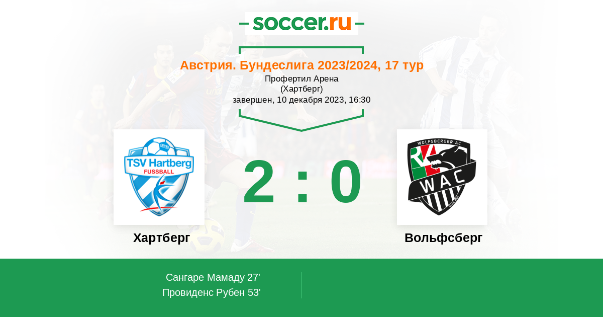 Протокол матча Хартберг против Вольфсберг
