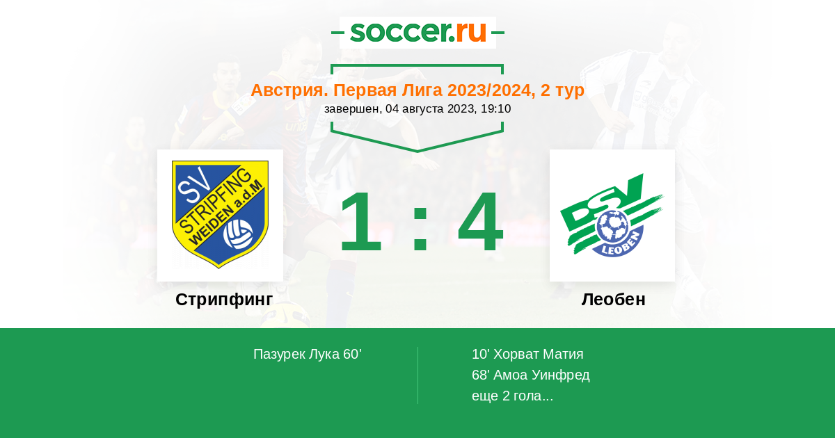Протокол матча Стрипфинг против Леобен