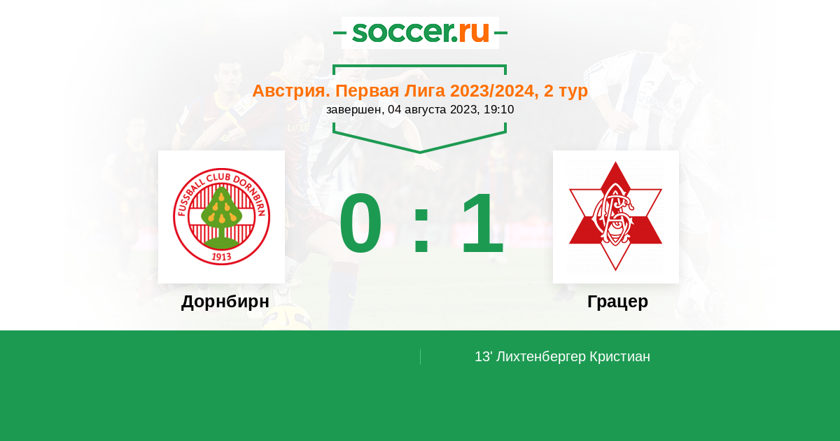 Протокол матча Дорнбирн против Грацер