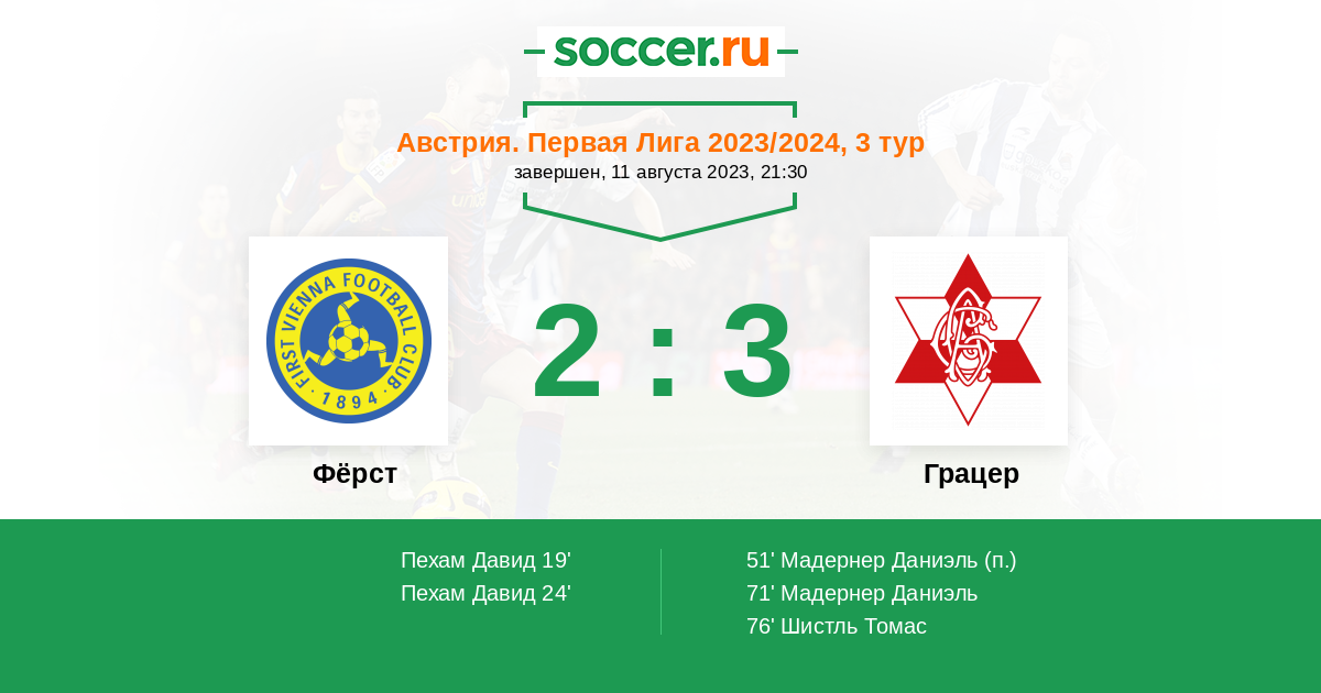 Протокол матча Фёрст против Грацер