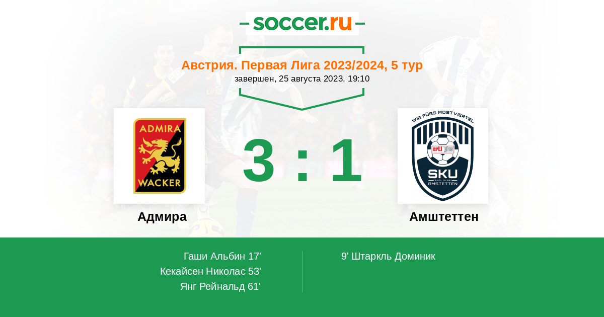 9' (0:1) Штаркль Доминик (7) (Пеллегрини Тобиас (18))