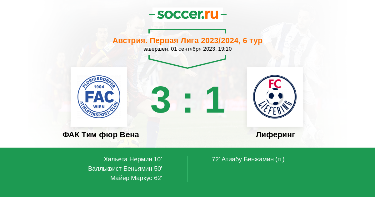 Протокол матча ФАК Тим фюр Вена против Лиферинг