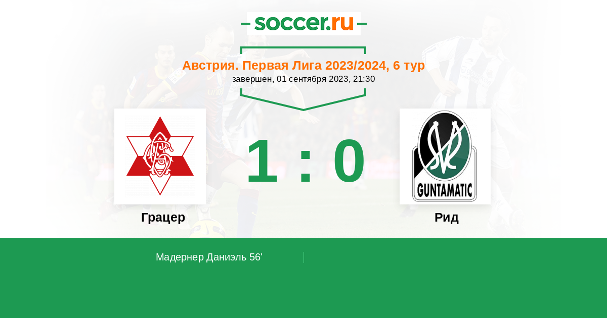 Протокол матча Грацер против Рид