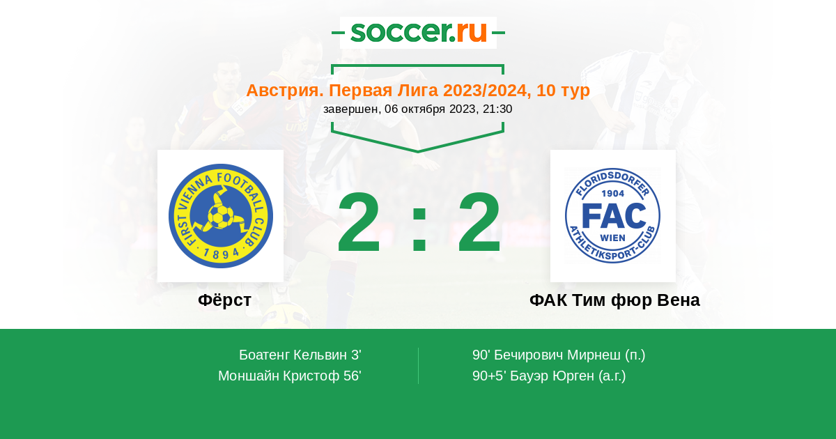 Протокол матча Фёрст против ФАК Тим фюр Вена