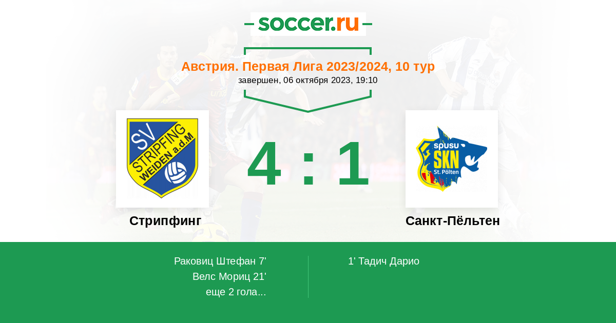 Протокол матча Стрипфинг против Санкт-Пёльтен