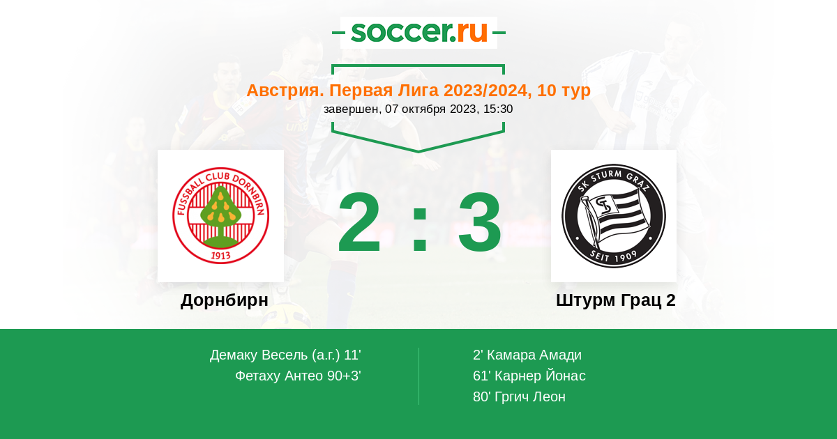 Протокол матча Дорнбирн против Штурм Грац 2