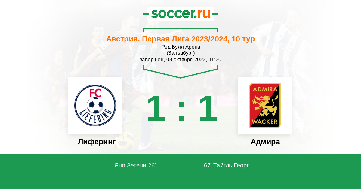 Протокол матча Лиферинг против Адмира