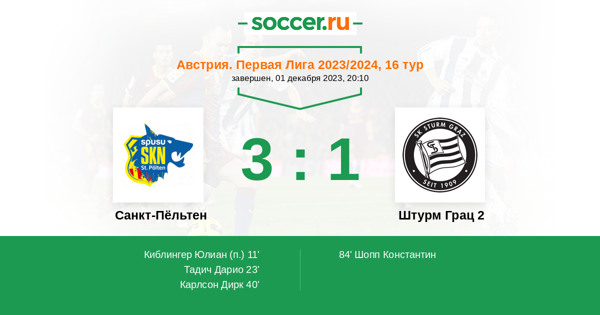 Протокол матча Санкт-Пёльтен против Штурм Грац 2