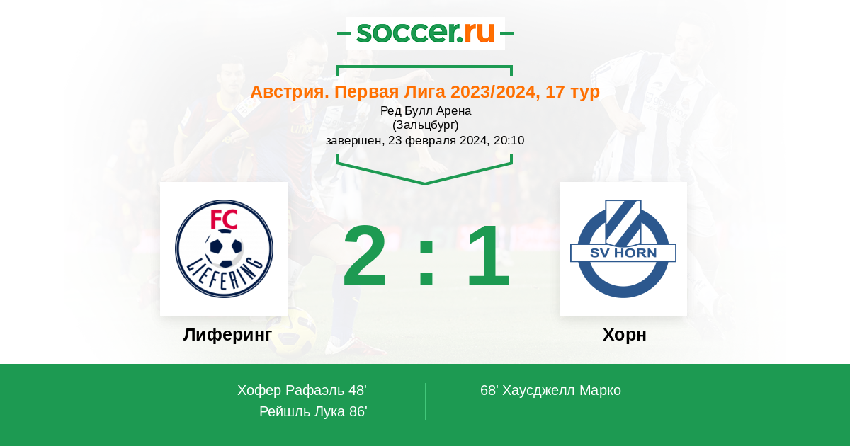 Протокол матча Лиферинг против Хорн