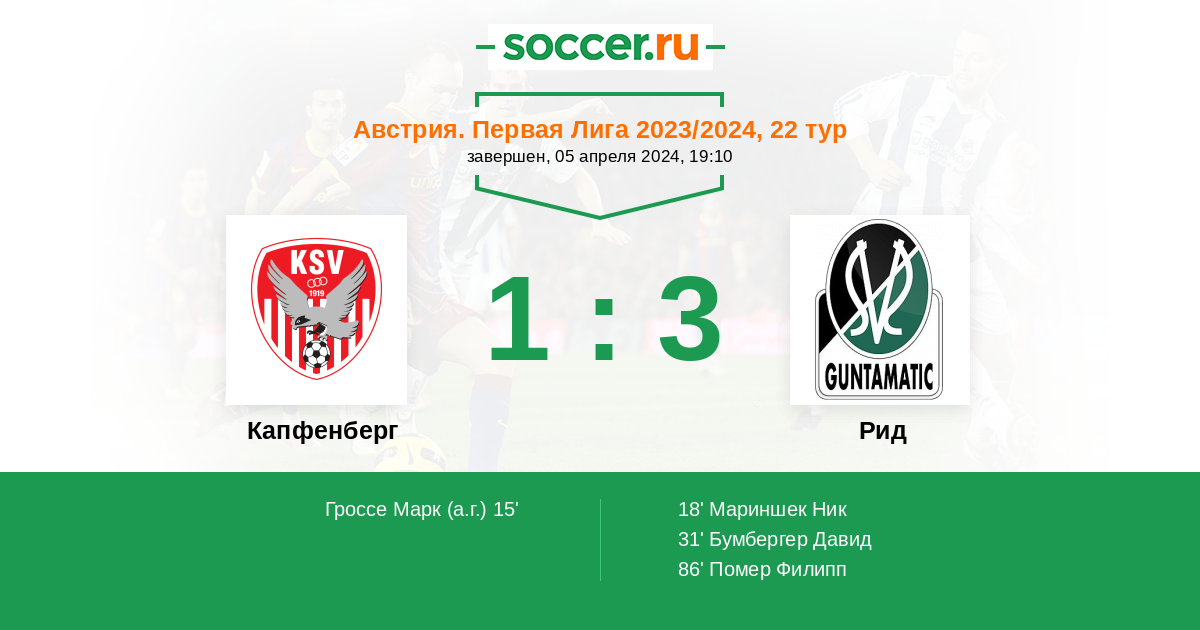 86' (1:3) Помер Филипп (17) (Россдорфер Фабиан (18))