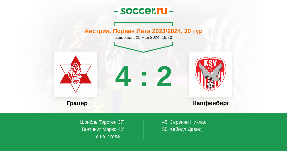 Протокол матча Грацер против Капфенберг