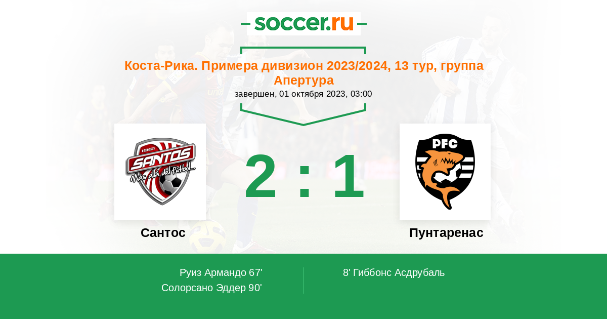 Протокол матча Сантос против Пунтаренас