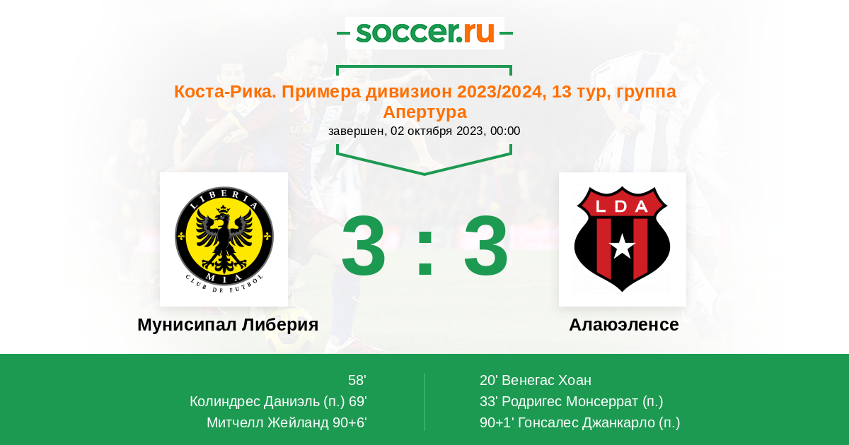 Протокол матча Либерия против Алаюэленсе