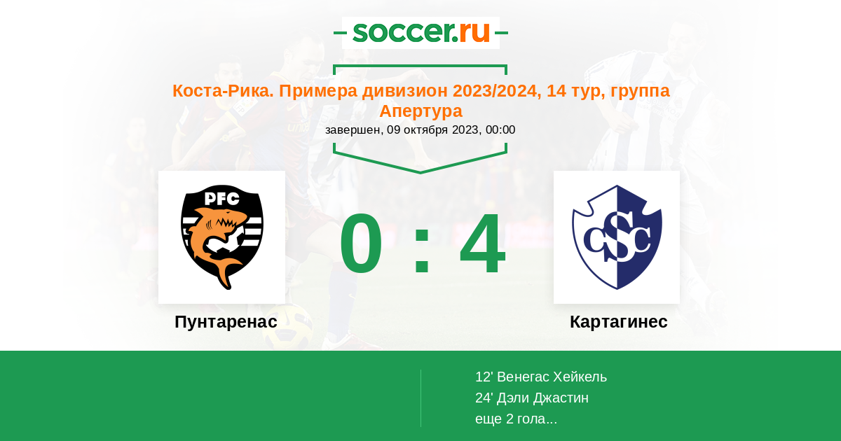 Протокол матча Пунтаренас против Картахинес