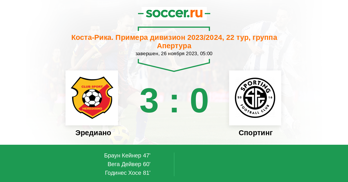 Протокол матча Эредиано против Спортинг Сан-Хосе