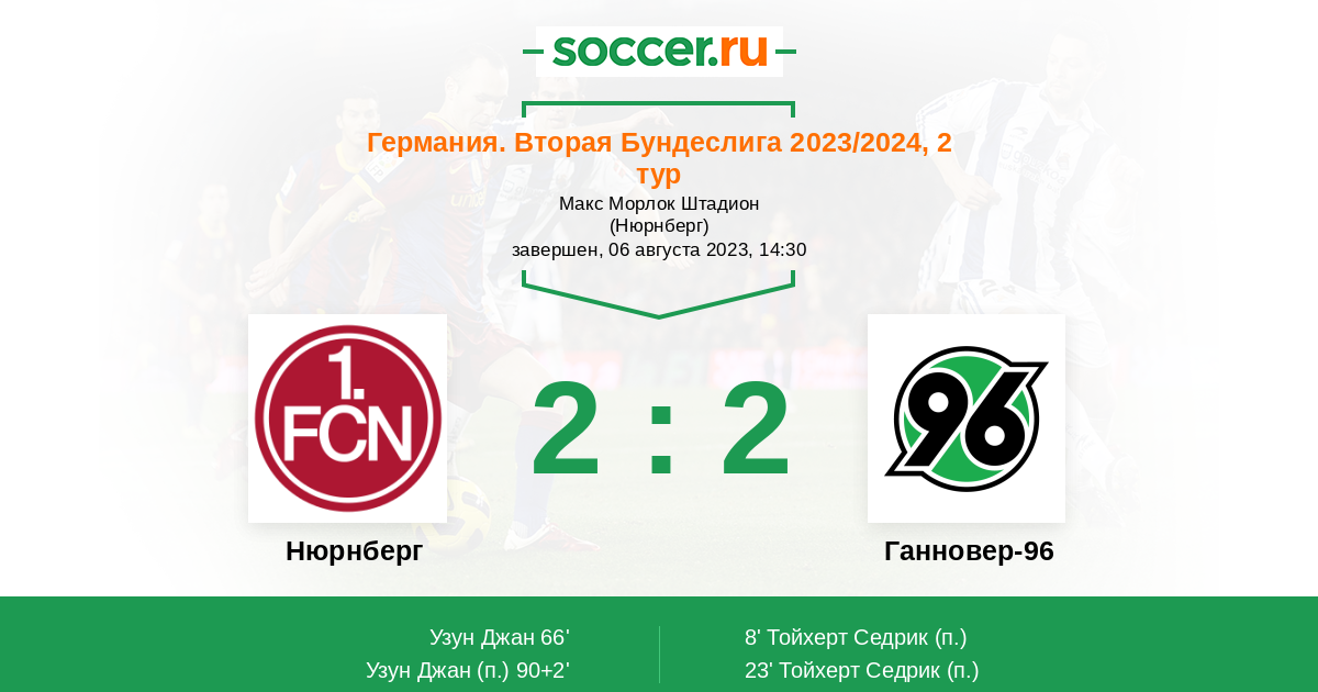 Протокол матча Нюрнберг против Ганновер-96