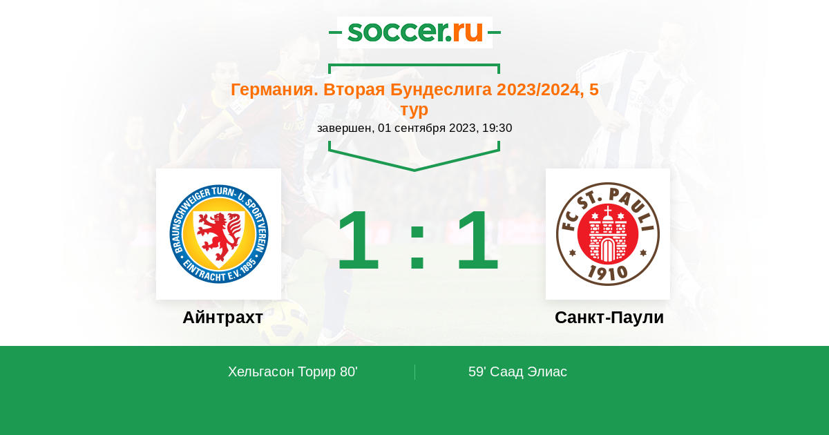 Протокол матча Айнтрахт против Санкт-Паули