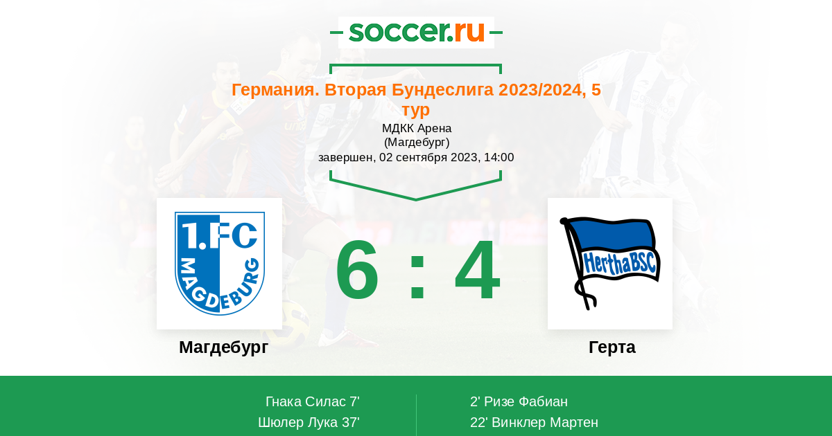 Протокол матча Магдебург против Герта