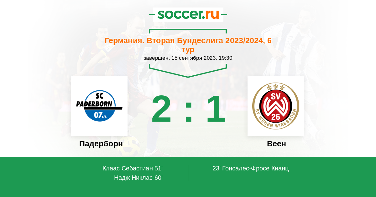 Протокол матча Падерборн против Веен