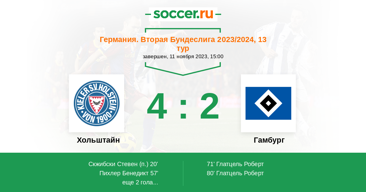 Протокол матча Хольштайн против Гамбург