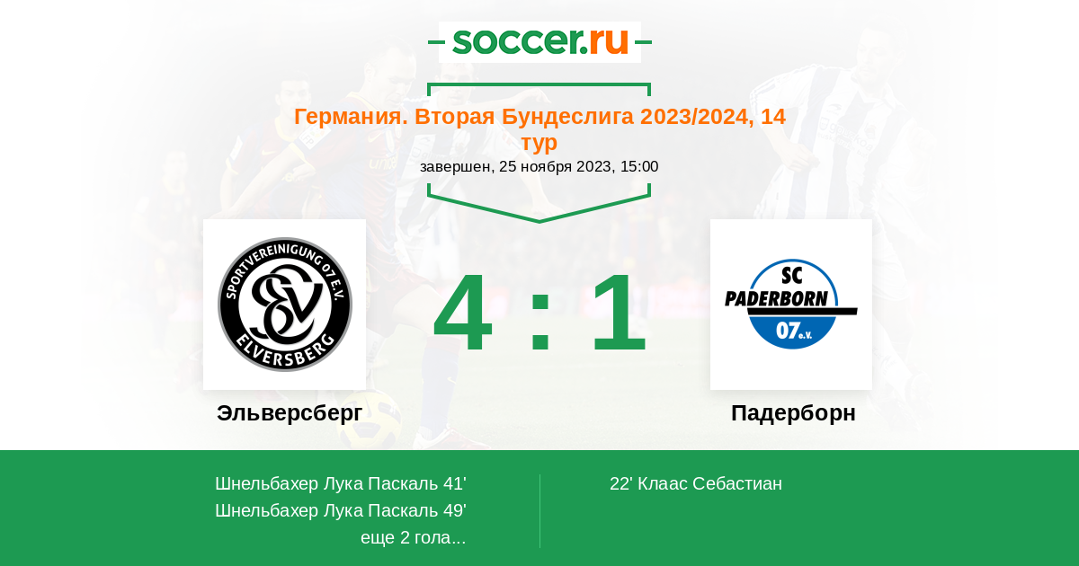 Протокол матча Эльверсберг против Падерборн