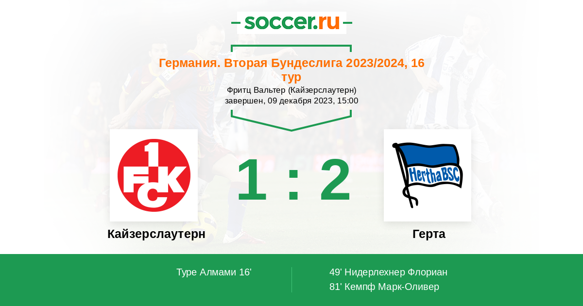 Протокол матча Кайзерслаутерн против Герта