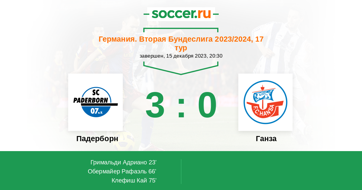 Протокол матча Падерборн против Ганза