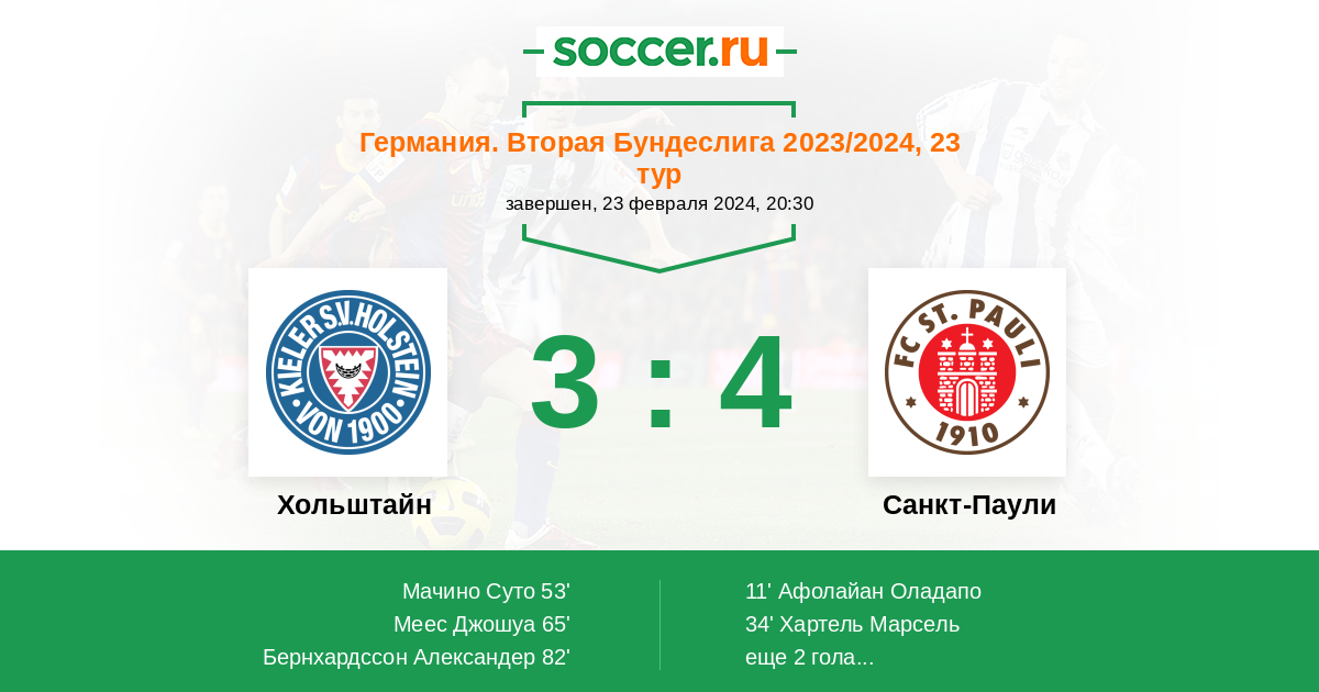 Протокол матча Хольштайн против Санкт-Паули