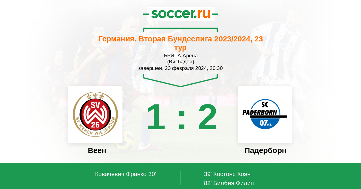 Протокол матча Веен против Падерборн