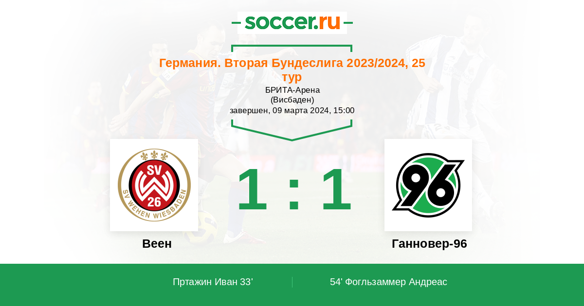 Протокол матча Веен против Ганновер-96