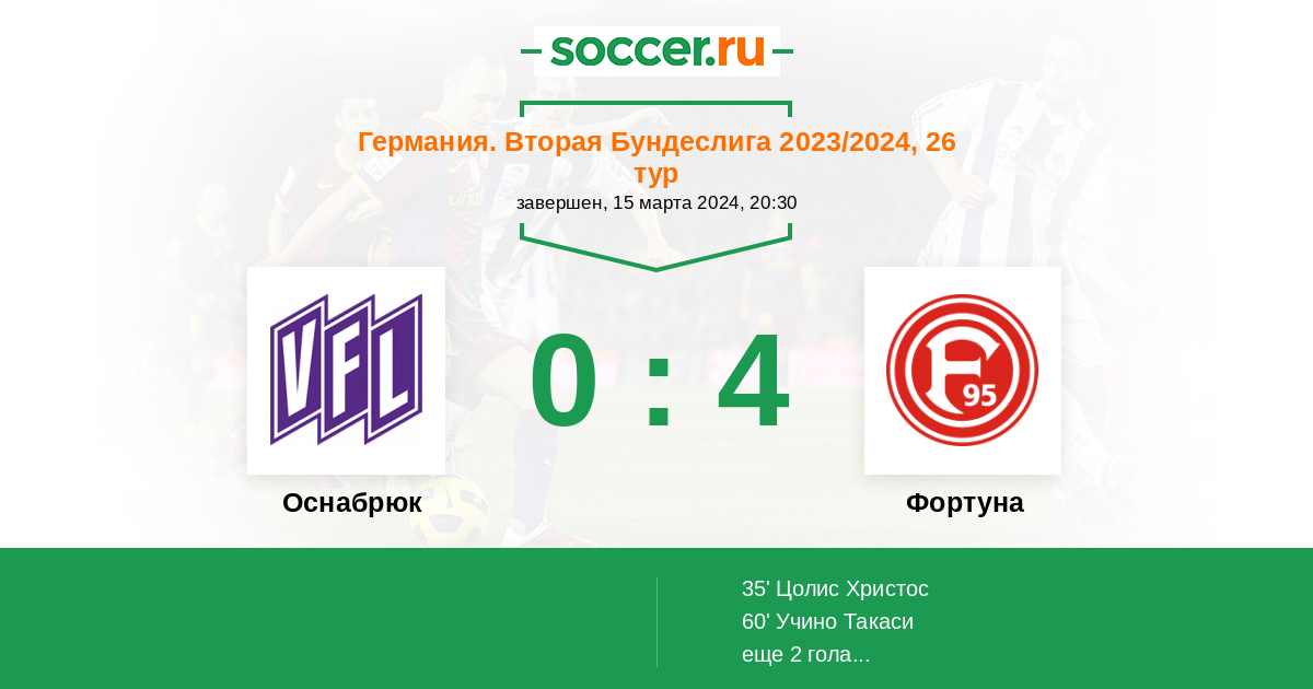 Протокол матча Оснабрюк против Фортуна