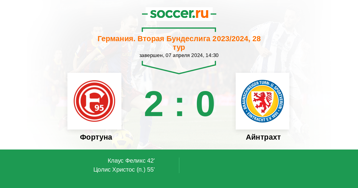 Протокол матча Фортуна против Айнтрахт