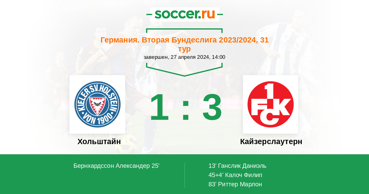 Протокол матча Хольштайн против Кайзерслаутерн
