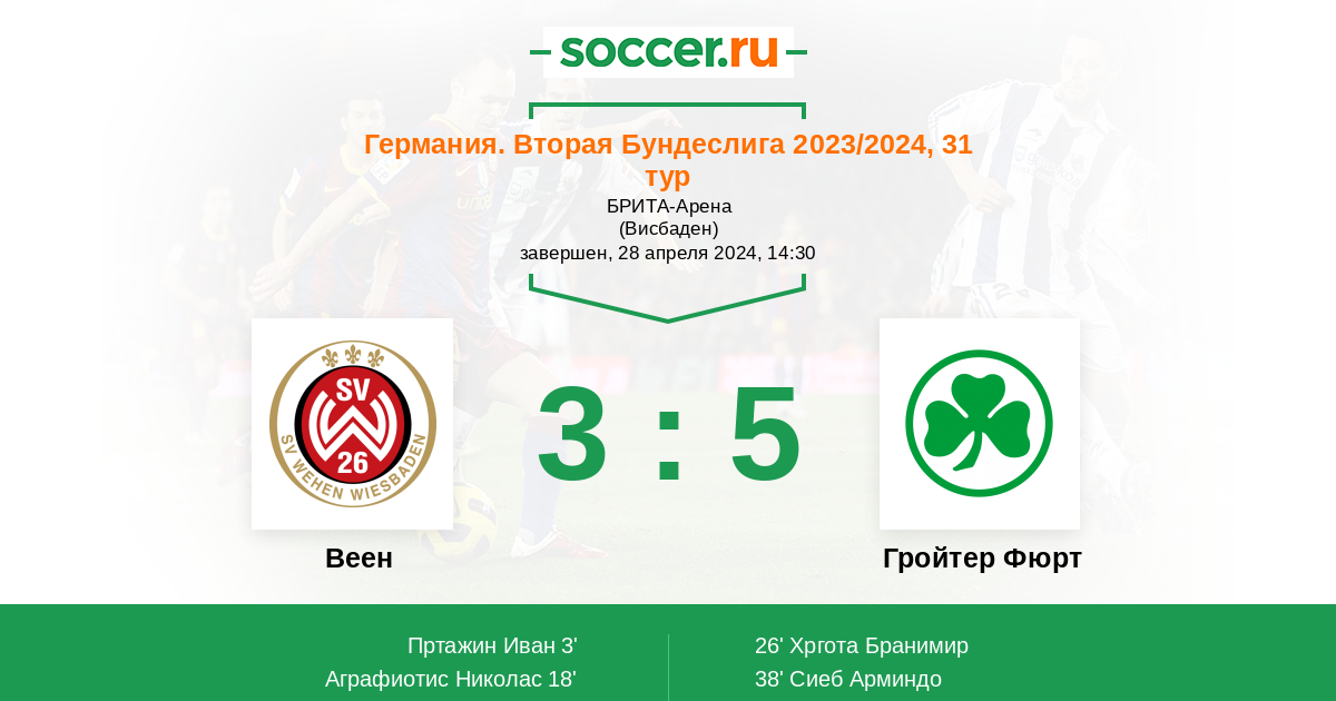Протокол матча Веен против Гройтер Фюрт