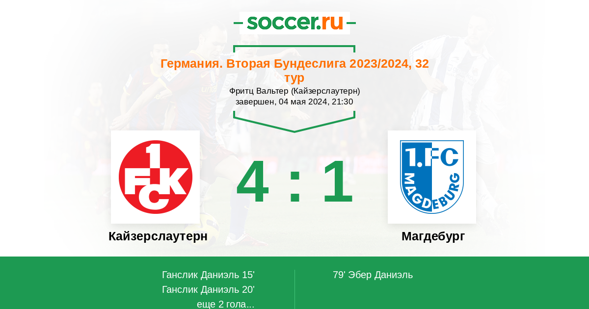 Протокол матча Кайзерслаутерн против Магдебург