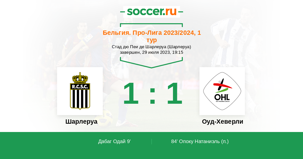 Протокол матча Шарлеруа против Оуд-Хеверли