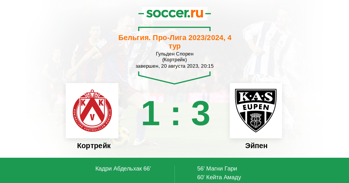 Протокол матча Кортрейк против Эйпен